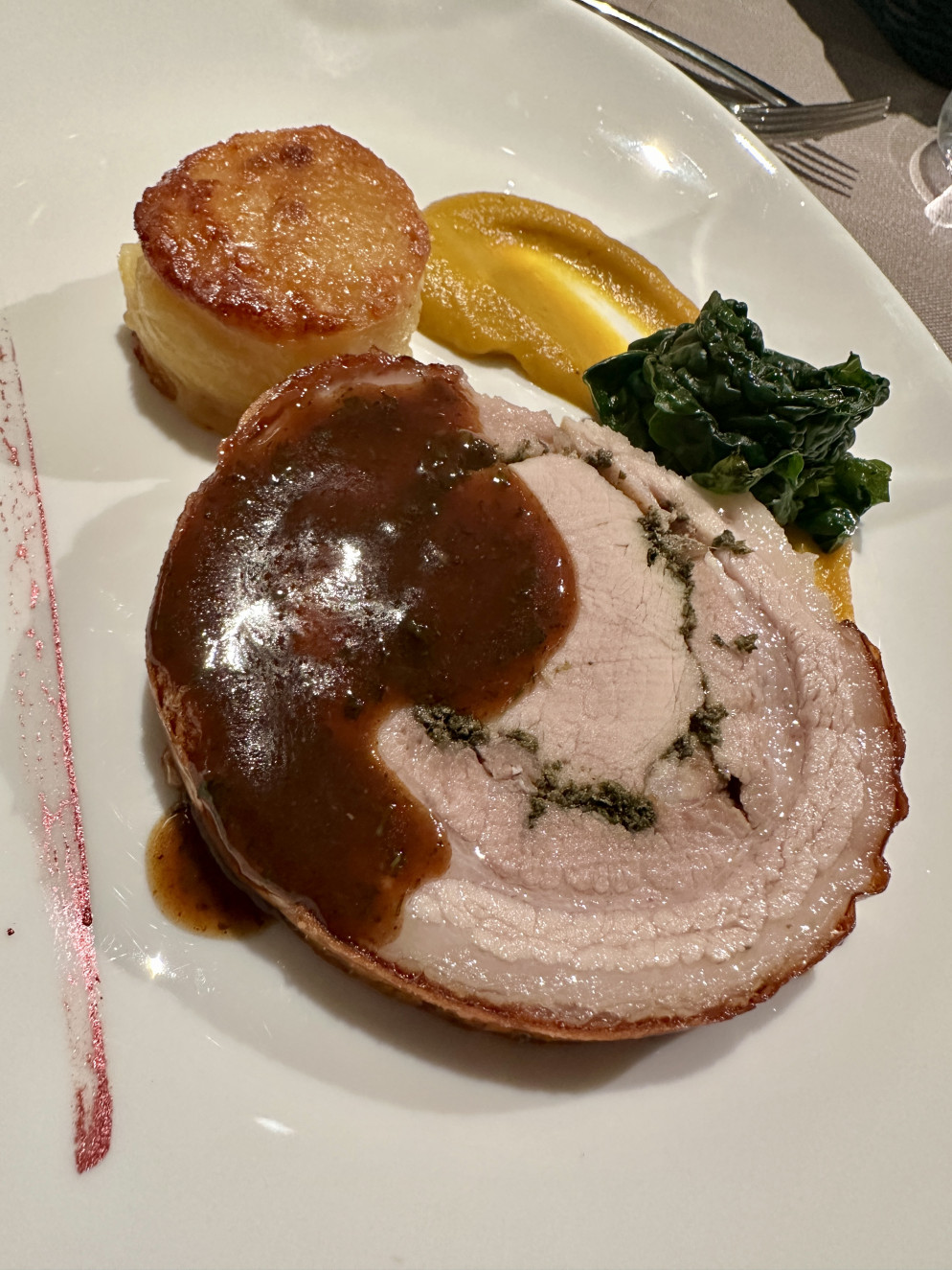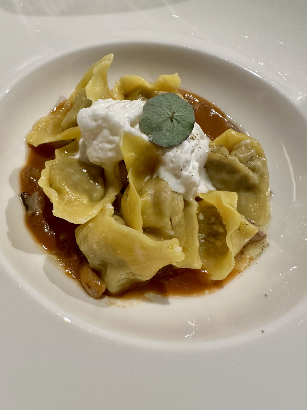 Il menu ideato dallo chef Andrea Muggiano, insignito del Diploma di Buona Cucina nel 2021, ha saputo tradurre questo spirito in una sequenza di piatti autentici e raffinati. Dall’aletta e cappello da prete con salsa verde e giardiniera d’autunno, con l’aggiunta della lingua di manzo per i più golosi, ai cappellacci ripieni di capriolo cotto in umido con ginepro, alloro e funghi trifolati, fino alla porchetta arrosto profumata alle erbe e alla crema di uva americana con sfera alla nocciola, ogni portata è stata accompagnata dai vini del Moncucchetto, in un equilibrio di aromi e ricordi.