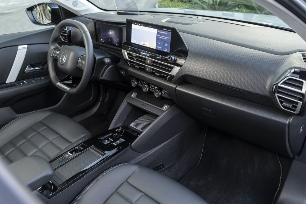 Citroën ha sempre riposto grande attenzione per la cura dell’abitacolo, che anche in questo caso appare confortevole, senza sconfinare nel lusso. Abbiamo apprezzato i sedili Citroën Advanced che, anche nel corso di un lungo viaggio, sostengono bene la schiena e rendono gradevole la guida. I comandi sono ben posizionati nella plancia, la gestione del clima è regolabile con i pulsanti e non tramite il touch screen. La grafica dell’infotainment, raccolta nello schermo multimediale centrale da 10 pollici, è poco moderna: su questo fronte ci si poteva attendere qualcosa di meglio.