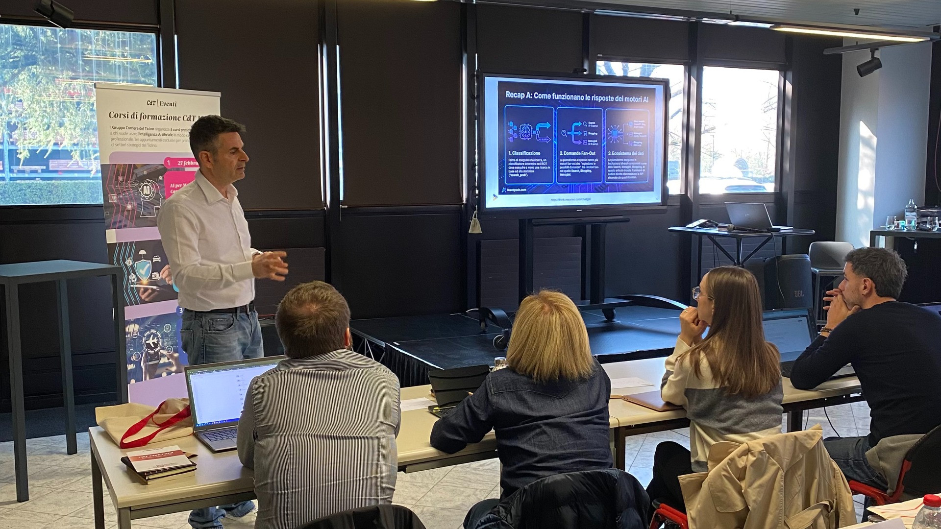 Il viaggio alla scoperta dell'intelligenza artificiale (AI) con il Gruppo Corriere del Ticino e Ale Agostini, CEO di Avantgrade.com, agenzia pioniera nell’AI Search sin dal 2017, è iniziato nel migliore dei modi. La prima puntata del corso dedicato a chi vuole ottenere una vera e propria «patente» per l'uso dell'IA – rivolta nello specifico a chi lavora nel marketing e nella comunicazione – ha registrato il tutto esaurito, con ben 40 partecipanti entusiasti che si sono ritrovati per approfondire le potenzialità (e i limiti) di questa tecnologia rivoluzionaria.