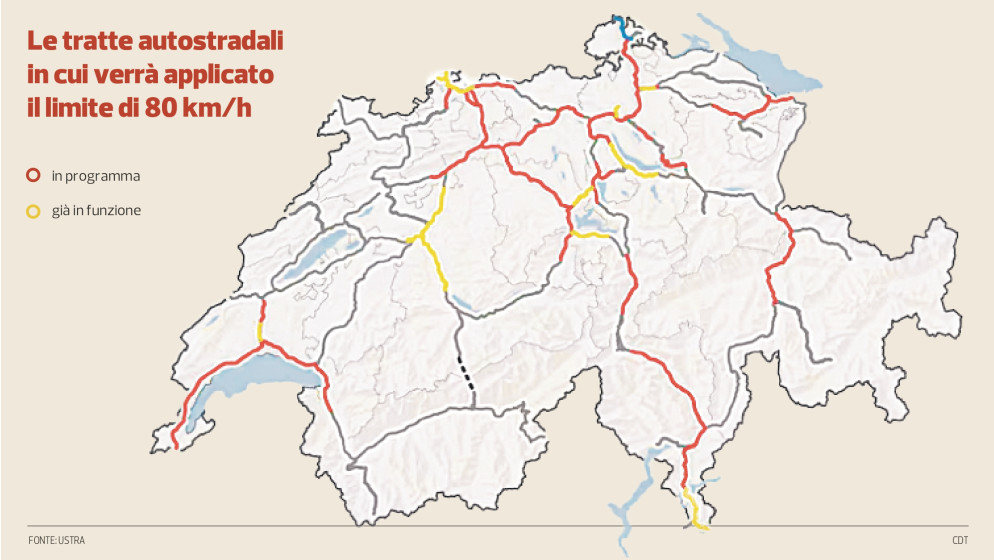 Critico sulle possibili conseguenze «anche di spinta a lasciare l’autostrada per usare le strade cantonali e comunali, intasando così pure quelle», è il presidente centrale dell’Automobile Club Svizzero (ACS) Simone Gianini. «Il fatto che la Confederazione stia pensando a questo tipo di soluzione addirittura per tutta la A2 su territorio ticinese, dimostra che le nostre autostrade, progettate e costruite nel secolo scorso, non sono più al passo con i tempi e vanno migliorate». «In questo senso, si attende a giorni la pubblicazione del rapporto del Poli di Zurigo commissionato dal consigliere federale Rösti che dovrebbe indicare la via per uno sviluppo integrato della mobilità in Svizzera». Per il consigliere nazionale del PLR «è infatti imprescindibile che, pur in un territorio limitato come il nostro, ci si possa ancora muovere liberamente, pure sulle autostrade». Secondo Gianini, anche se per certe situazioni una riduzione puntuale del limite di velocità può aiutare, «dare l’impressione di voler introdurre un limite generale e ricorrente di 80 km/h sulle nostre autostrade è sbagliato e controproducente: la soluzione non è quella di rallentare il traffico - magari anche dove non è necessario -, ma intervenire sui colli di bottiglia e l’informazione».