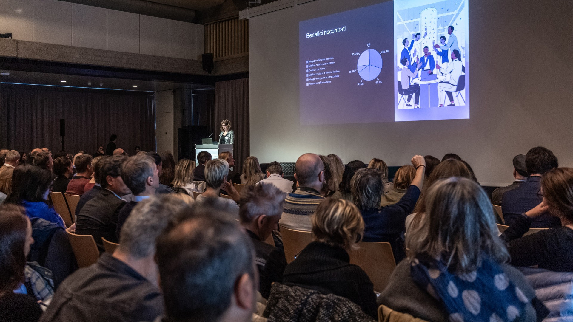 In conclusione, la presidente di HR Ticino ha osservato come la cultura digitale sia ancora in evoluzione, con differenze significative tra PMI e grandi aziende in termini di maturità tecnologica e risorse disponibili. Inoltre, emerge chiaramente la necessità di valorizzare il Capitale Umano attraverso formazione continua, supporto al cambiamento e politiche che tutelino il benessere dei dipendenti.