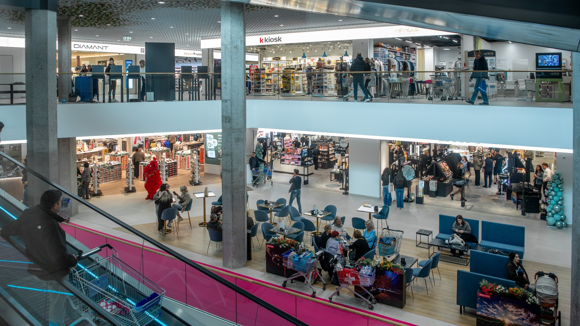 «Noi creiamo il palcoscenico, al resto ci pensano gli inquilini e i clienti». Martin Mayrl guarda anche lui con soddisfazione il rinnovato piano centrale del centro commerciale, che sabato mattina è stato quasi preso d’assalto dalla popolazione. Che ha potuto scoprire il mantenimento delle «famose» scale mobili del Serfontana, che dunque sono rimaste. Ma anche notare come gli spazi oggi siano più larghi e percorribili, ma anche più accoglienti, dato che sono davvero molte le postazioni in cui sedersi e riposare un po’ tra un acquisto e l’altro. Si ha insomma davvero l’impressione di trovarsi di fronte a un «Serfontana 2.0», così come è stato ribattezzato dalla nuova proprietà.