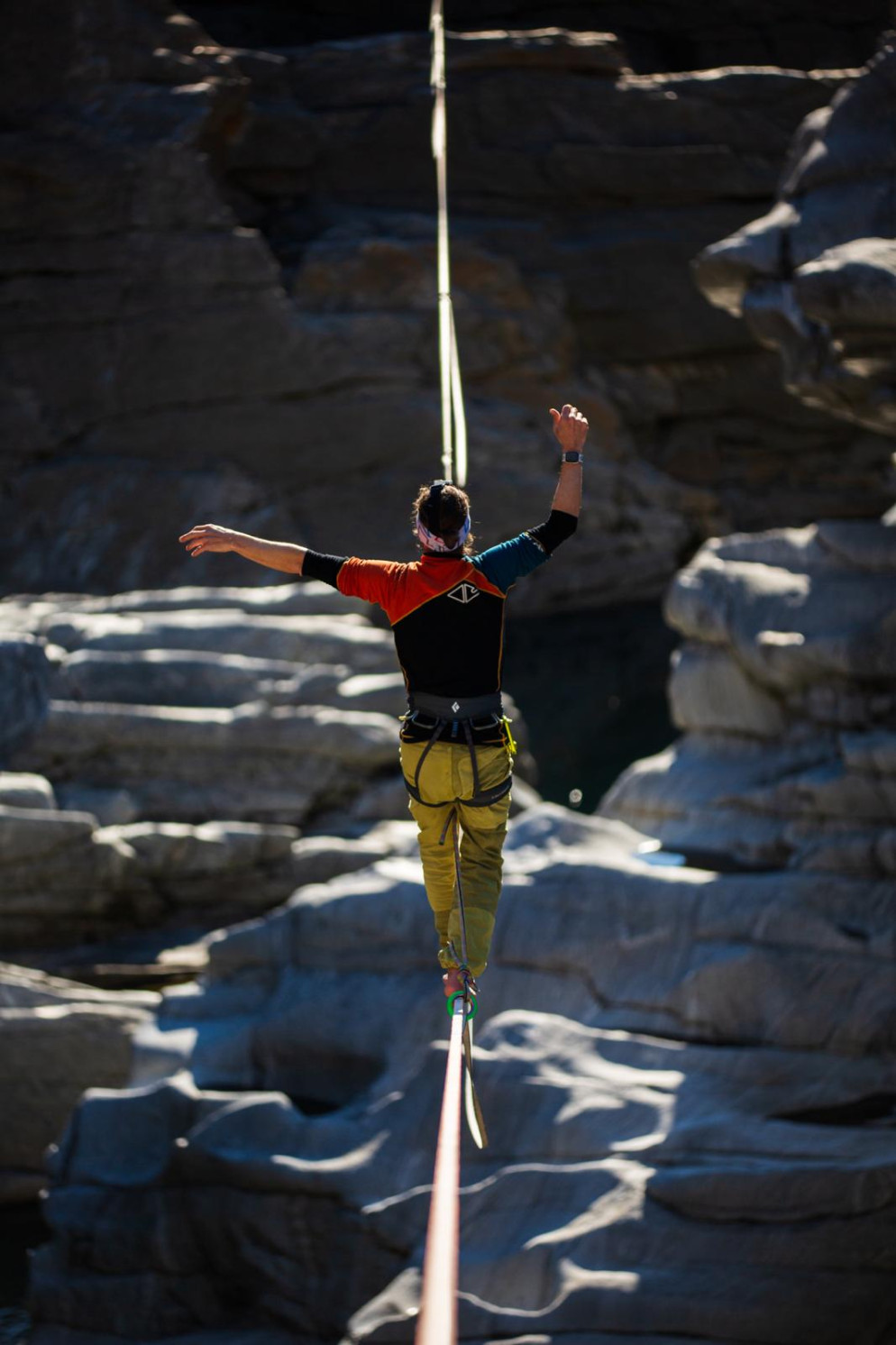 Ed è proprio qui che la tecnica incontra la poesia del gesto: con Giuseppe Di Bella, tra i principali highliner italiani e fondatore di Slackline Sicilia ASD, possiamo camminare insieme lungo la linea, respirando il ritmo di ogni passo. Molto attivo anche sulle Alpi, in particolare in Trentino, descrive questa esperienza come «una fortuna particolarmente ricercata», ma sottolinea che non è qualcosa che si afferra senza attraversare la sfida. «Per riuscire a godere di questa fortuna bisogna superare un primo step, che non è affatto semplice, e ha a che fare con un istinto primordiale di sopravvivenza. Il corpo e la mente urlano paura, i muscoli si irrigidiscono, il cuore accelera. La sfida più grande è raggiungere una quiete mentale e fisica».