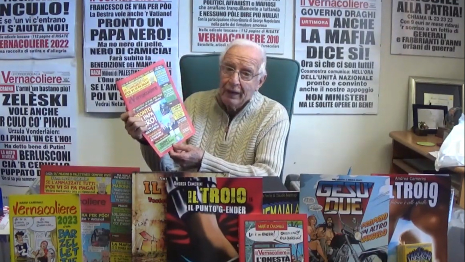 Accanto alla satira grafica e verbale, c’è la parte più silenziosa ma incisiva del Vernacoliere: gli editoriali in italiano. «Molti lettori mi dicono che li aspettano più delle locandine. Io studio, leggo, mi informo. La satira è un lampo; l’editoriale è un bisturi».