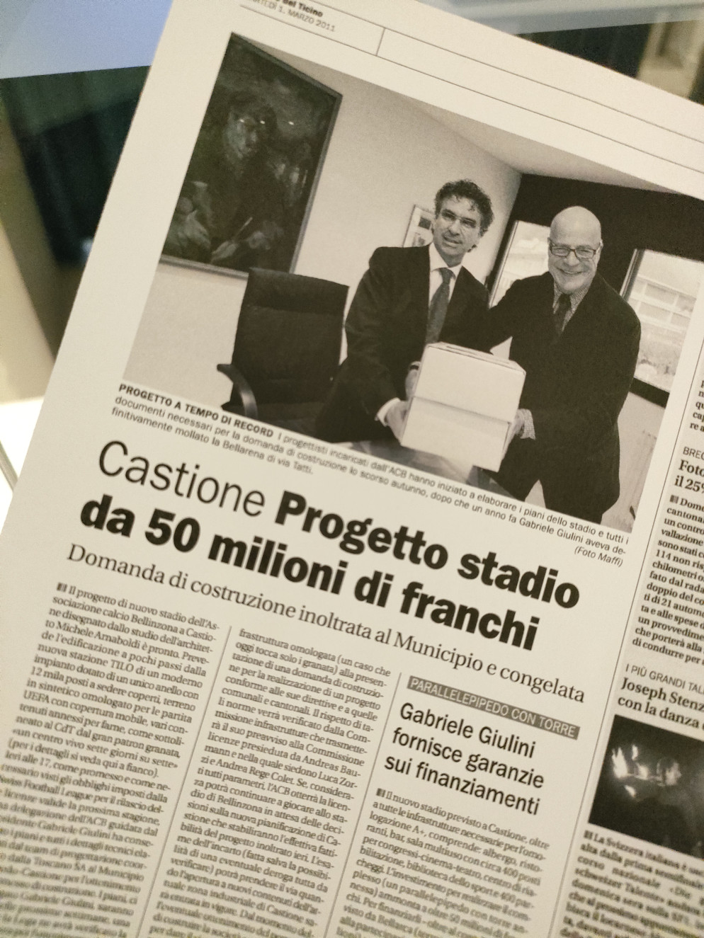 A distanza di più di due lustri sono cambiate molte cose. La società anonima dell’ACB ha vissuto l’inferno - sportivo, beninteso - del fallimento sotto una voragine di 7 milioni di franchi di debiti. La squadra è ripartita dal calcio regionale grazie agli sforzi profusi dal fido timoniere Paolo Righetti e dal suo staff e, finalmente, ha poi potuto riassaporare il dolce gusto della Challenge League in virtù dell’impegno finanziario dapprima di Pablo Bentancur e, dalla scorsa estate, del patron colombiano Juan Carlos Trujillo Velasquez. Il sogno dello stadio è per contro svanito una volta conclusasi in modo brusco l’esperienza di Gabriele Giulini al comando del pluricentenario club della capitale. Nemmeno un ultimo, disperato, tentativo di convincere nel 2017 una società inglese, guidata da un uomo d'affari italiano, ad investire a Castione è andato in porto. I soldi non sono mai stati sbloccati. Così il Municipio non ha potuto fare altro che rivedere la pianificazione dell’area a ridosso della linea ferroviaria (dall'estate 2028, come detto, arriveranno le moderne Officine FFS), stralciando definitivamente l’impianto sportivo multifunzionale con annesso centro commerciale che avrebbe potuto ospitare anche dei concerti ed altri eventi. Da notare che i diritti d'autore appartengono tuttora allo studio Michele Arnaboldi Architetti e al team di progettisti che hanno «disegnato» l'impianto che avrebbe dovuto ospitare le partite casalinghe dell'ACB.