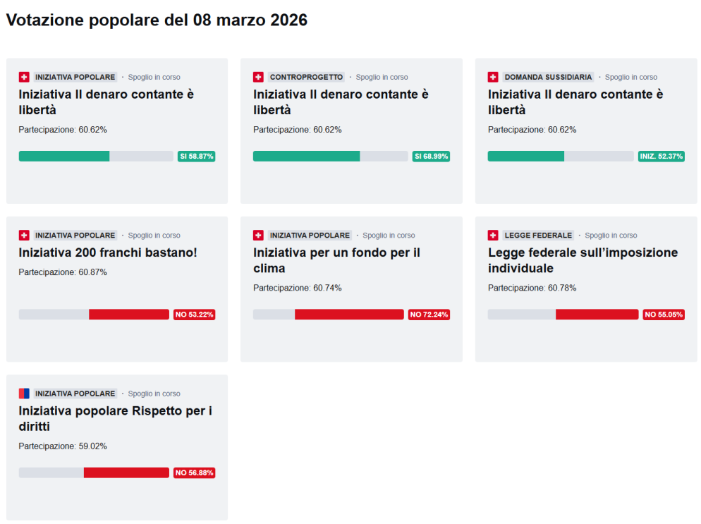Soddisfazione viene espressa anche per l'accettazione dell'imposizione individuale, «che abbiamo contribuito a plasmare in modo decisivo in Parlamento». Il nuovo sistema, approvato proprio l'8 marzo, «è una vittoria per la parità e per una società moderna e più equa». C’è invece rammarico da parte dei Verdi del Ticino per la bocciatura dell’iniziativa contro il dumping salariale. «È una mancata occasione per intervenire concretamente in un mercato del lavoro segnato da salari da fame e precarietà». Nonostante il risultato, «i problemi strutturali del nostro cantone permangono e restano irrisolti. La nostra mobilitazione non si ferma quindi qui; continueremo a batterci in Gran Consiglio per ottenere controlli più severi e trasparenza, perché il ‘no’ di oggi non deve diventare un lasciapassare per lo sfruttamento e la concorrenza sleale sulla pelle di chi lavora».