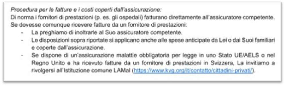 I media italiani hanno parlato di «fatture inviate per errore» alle famiglie dei feriti. Alcuni hanno persino riferito che «avrebbero potuto restituirle al mittente attraverso un link». Anche su questo punto, le autorità cantonali chiariscono – nuovamente – che l'invio di una copia delle fatture emesse intestate alle assicurazioni in Svizzera è una pratica comune. Ma aggiungono pure che le famiglie e le vittime «sono state informate per posta, tra la fine di febbraio e l’inizio di marzo, sulla procedura da seguire in caso di ricezione di fatture mediche». Anche in quel momento, è stato precisato che non vi era alcun pagamento da effettuare.