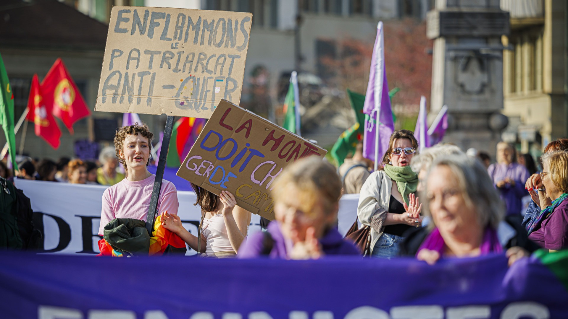 La piazza adiacente si è progressivamente tinta di viola, colore simbolo dello Sciopero femminista. Il corteo si è poi diretto verso l'Esplanade de Montbenon, spazio verde di Losanna molto frequentato dai cittadini.