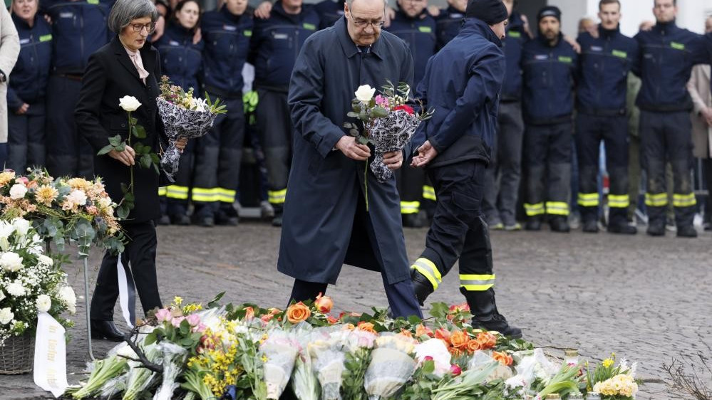 Diverse centinaia di persone hanno assistito alla cerimonia, durante la quale il presidente, sotto una leggera pioggia, ha deposto una corona, diversi mazzi di fiori e una rosa bianca, firmando poi il libro delle condoglianze. In tali momenti ha regnato un grande silenzio, interrotto solo da un applauso di alcuni minuti per le forze di intervento.