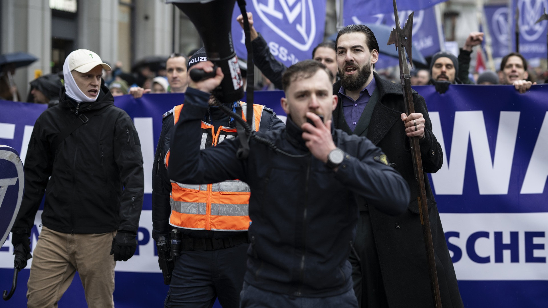 In testa al primo corteo, del movimento Mass-Voll (letteralmente la misura è colma, nato durante la pandemia di Covid-19 in particolare proprio per lottare contro la discriminazione di chi si opponeva alla vaccinazione), hanno sfilato numerosi membri del gruppo di estrema destra Junge Tat (letteralmente azione giovane).
