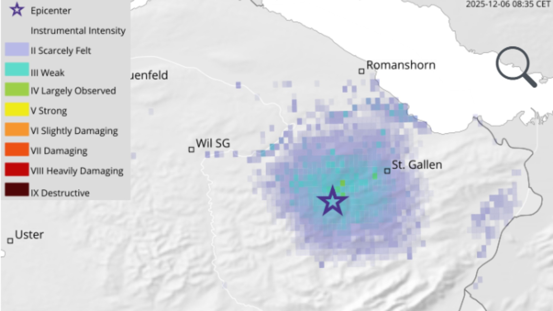 Di solito non si verificano danni per un terremoto di questa magnitudo. Il SED registra tra i 1000 e i 1500 sismi all'anno. La popolazione ne avverte solo 10-20, che hanno generalmente una magnitudo superiore o pari a 2,5.