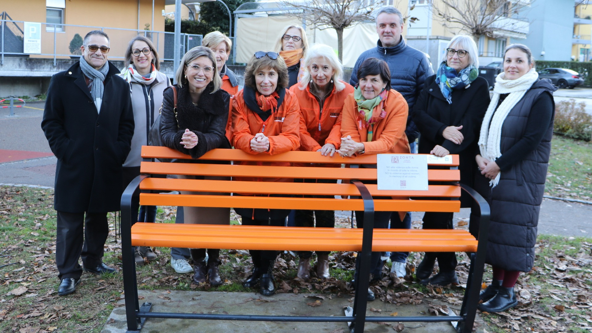 Sulla panchina è stata apposta una targhetta, posizionata dai rappresentanti del Municipio di Losone e dello Zonta Club di Locarno, con la scritta: «NO alla violenza sulle donne. In ricordo di tutte le vittime». L’iniziativa, promossa dallo Zonta Club in collaborazione con il Comune del Locarnese, mira a dare visibilità a chi subisce violenza e a combattere questo fenomeno. La panchina arancione diventa così un mezzo concreto per manifestare l’impegno contro la violenza sulle donne, un impegno che può essere efficace solo se condiviso da tutta la comunità. Con questo gesto, il Municipio losonese e lo Zonta Club voglio contribuire attivamente per sensibilizzare e portare l’attenzione sulla prevenzione.