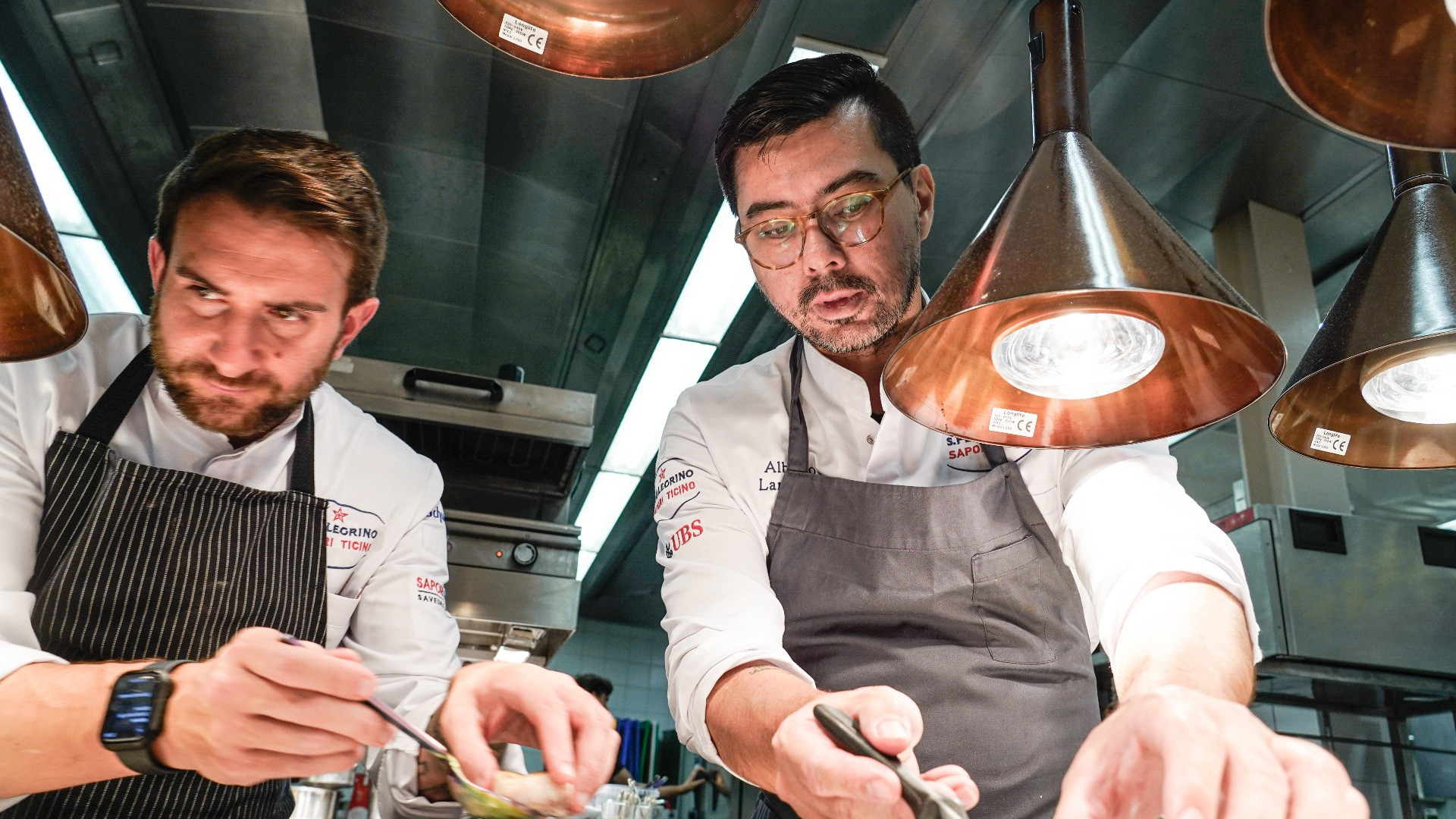 Il primo, il 28 settembre all’Hotel Eden Roc di Ascona, lo ha visto accanto a Campanella, due stelle Michelin e 18 punti GaultMillau. «Con Alberto è stato bellissimo – racconta lo chef bistellato de La Brezza –. È arrivato con i suoi ragazzi, curiosi e rispettosi, e noi lo eravamo altrettanto verso di loro. È questo il bello di Sapori Ticino: imparare, contaminarsi, restare curiosi».