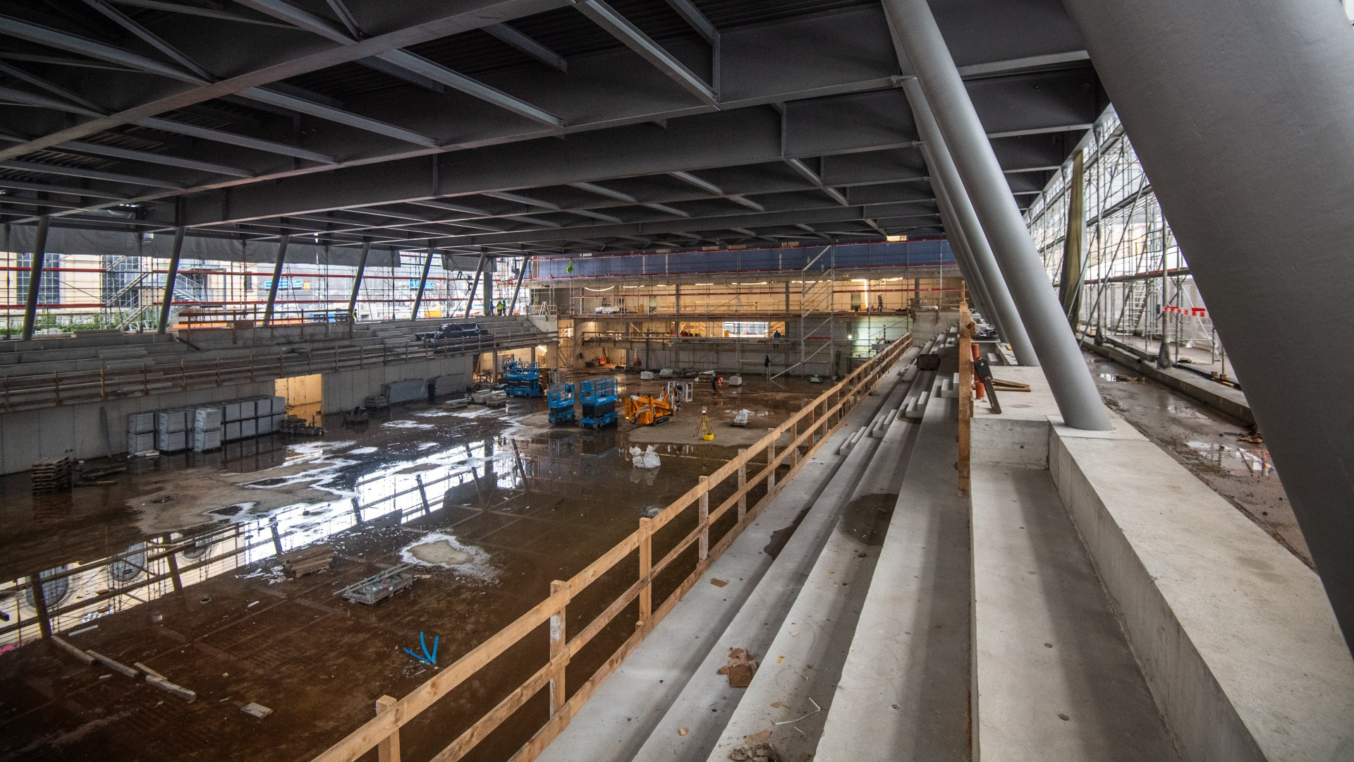 Uno dei suoi punti di forza, è stato raccontato oggi ai giornalisti, sarà la palestra tripla, dove giocherà, ad esempio, la squadra di pallacanestro dei Lugano Tigers e all’occorrenza potrà essere trasformata in un’arena per concerti da 4 mila spettatori (che saranno ridotti a 3 mila per le partite grazie a tribune e spalti mobili). Oggi in questo spazio ci sono ancora impalcature, cavi e attrezzi da cantiere. Ma la percezione di grandezza c’è comunque. Soprattutto pensando a quello che ha detto Badaracco, poco prima di entrarci. «A Lugano un Palazzetto non c’è mai stato ed è tra virgolette uno scandalo per una Città come la nostra, in cui abbiamo oltre 130 associazioni sportive».