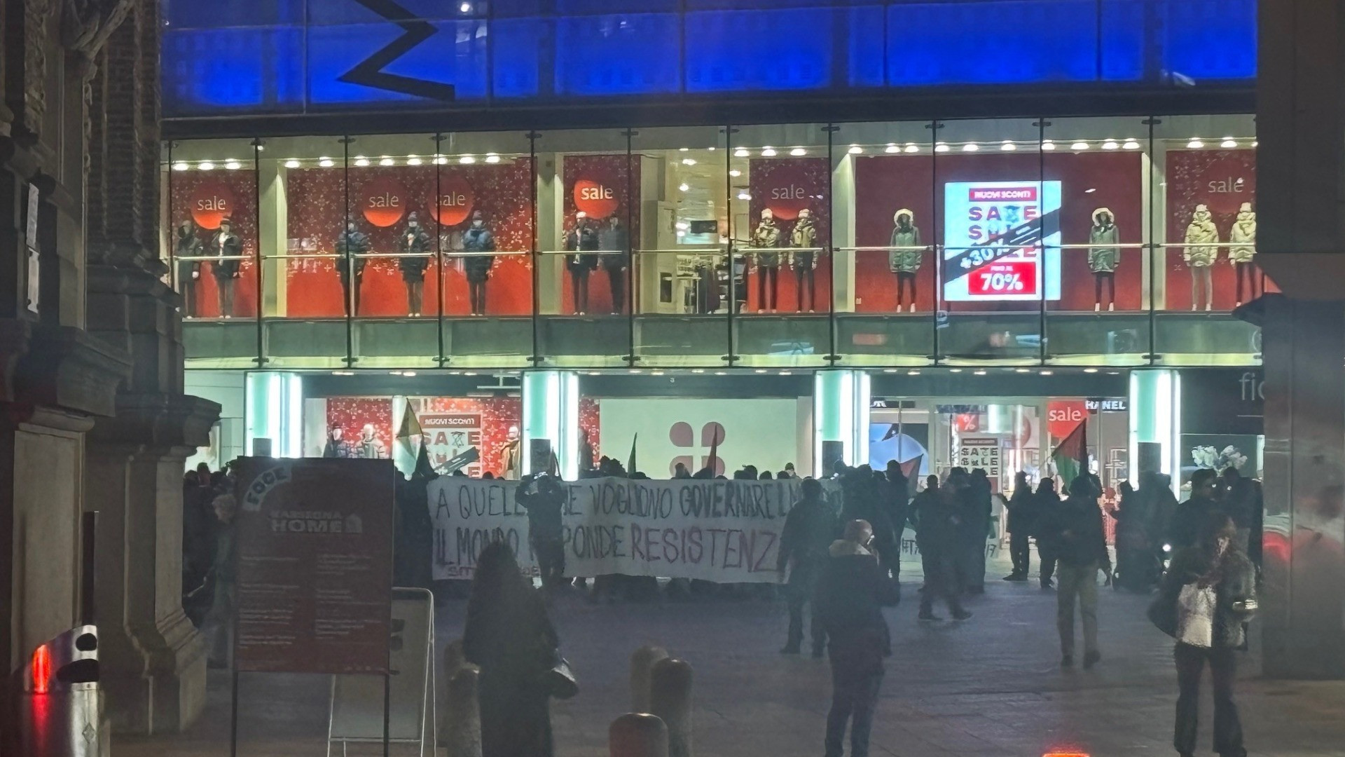 Durante il sit-in non autorizzato – a cui ha partecipato un centinaio di persone e che è stato monitorato da una decina di agenti di polizia – sono stati scanditi slogan contro la guerra e contro «quelli che vogliono governare il mondo» ed è stato rivendicato il diritto a manifestare per le strade. Per l’occasione sono tornate a sventolare anche le bandiere della Palestina. Attorno alle 19 il corteo si è avviato verso la Pensilina e lungo via Pretorio, per arrivare infine in piazza Molino Nuovo.