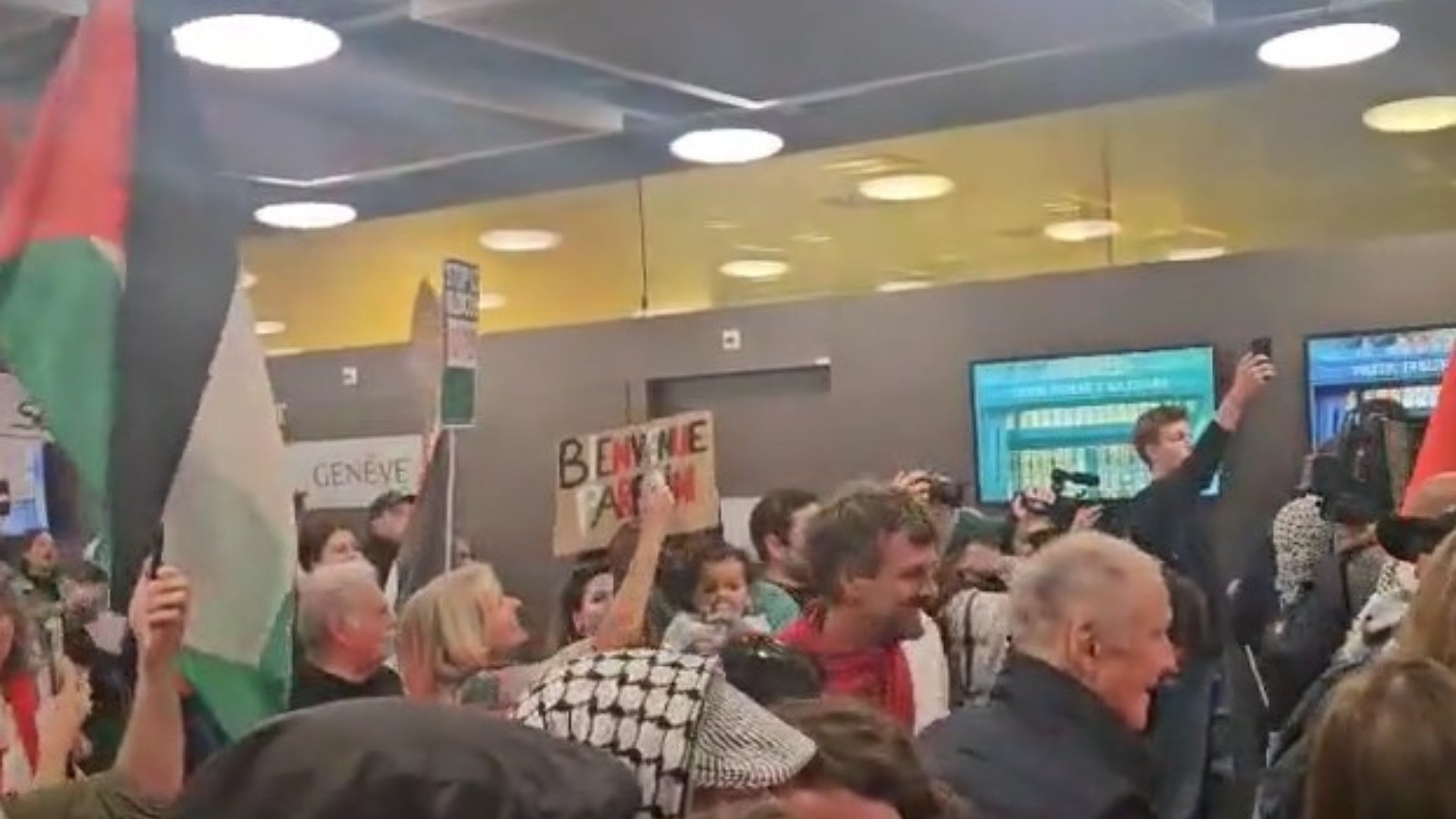 Accolti al grido di «solidarietà con la flottiglia» nove membri svizzeri della missione umanitaria Global Sumud Flotilla sono atterrati questo pomeriggio all'aeroporto di Ginevra. Una folla di persone è accorsa allo scalo per mostrare la propria vicinanza agli attivisti, tra lo sventolio di bandiere palestinesi, sonori applausi e, scandito a gran voce, quello che ormai è diventato l'inno ufficiale di chiede la fine del massacro nella Striscia di Gaza: «Free Palestine!».