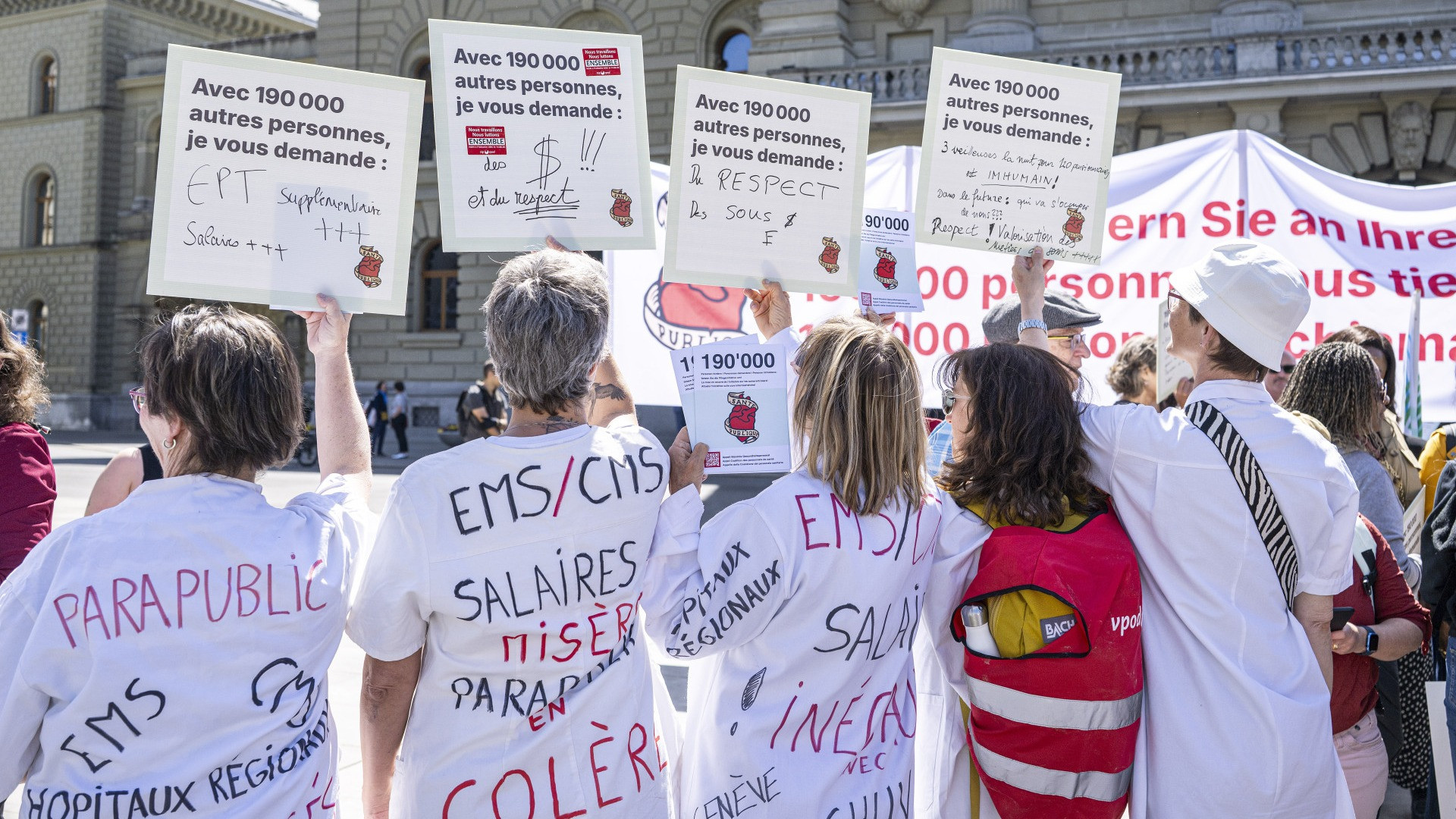 L’attuazione dell’iniziativa sulle cure infermieristiche, approvata nel 2021 dal 61% dei votanti, è ancora lontana dalla meta. E soprattutto dalle aspettative della categoria e dei sindacati, che in vista del dibattito previsto oggi e domani al Nazionale hanno presentato ieri a Berna un appello urgente con 190 mila firme. Circa 200 dipendenti del settore hanno esposto un grande striscione, cartelli e un cuore gigante per ricordare ai deputati le loro responsabilità nel quadro del dibattito sulle loro condizioni di lavoro. La richiesta è di attuare l’iniziativa subito e in modo integrale. Concretamente, si chiede di introdurre una significativa riduzione dell’orario di lavoro, una chiave di ripartizione del personale che consenta cure di qualità e migliori supplementi per il lavoro notturno, nei fine settimana e nei giorni festivi, mantenere l’obbligo a carico di tutti i datori di lavoro di rispettare almeno le leggi e i contratti collettivi cantonali, come pure definire il finanziamento necessario per tutte queste misure per il ramo della salute.