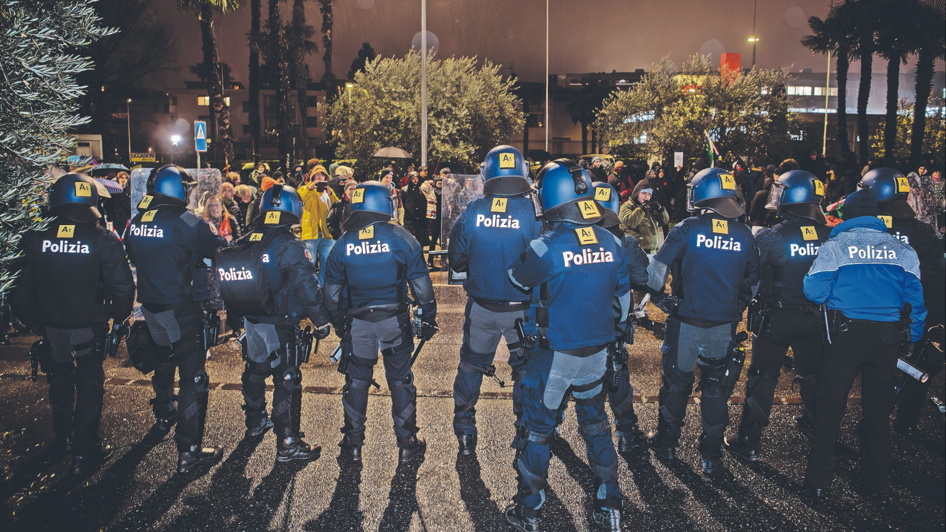 Un secondo intervento di polizia, più muscoloso, si è verificato una decina di minuti più tardi. Alcuni manifestanti si sono infatti posizionati al vicino incrocio di via al Gas, da dove proveniva il flusso di autovetture che si stavano recando all’evento. Un «blocco» che ha richiesto il riposizionamento di alcuni agenti per far sì che venisse ristabilita la viabilità. Azione, quest’ultima, che ha incontrato la resistenza del gruppetto di dimostranti i quali hanno preso di mira un’autovettura. È a quel che punto che, per ristabilire nuovamente l’ordine, i poliziotti in tenuta antisommossa hanno fatto indietreggiare i contestatori, utilizzando anche, in un paio di frangenti, lo sfollagente.