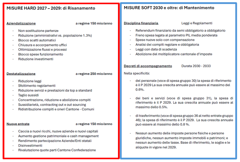 L’UDC Ticino richiama quindi con forza il documento «Linee guida per il risanamento delle finanze cantonali», presentato e approvato dal Comitato cantonale nel novembre 2025. In quel testo il partito ha già indicato una via chiara: agire sulla struttura dello Stato, sui costi interni, sull’amministrazione, sui compiti e sulle priorità, invece di scaricare ancora una volta il conto sui contribuenti. Oggi più che mai quel documento contiene indicazioni concrete che non possono restare lettera morta (l’estratto del documento indicato di seguito):
