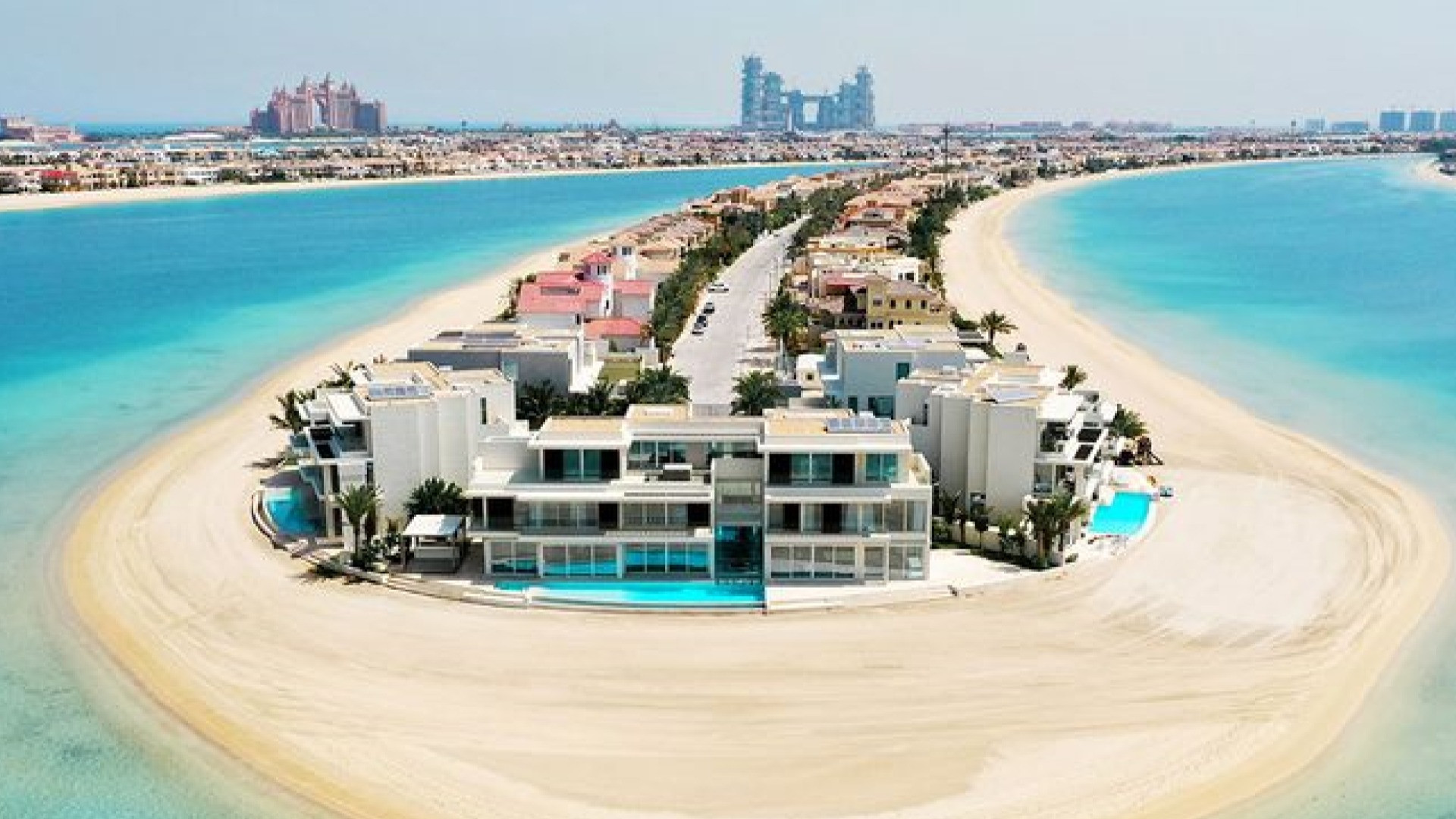 Villetta moderna, vista mare, piscina sulla spiaggia. Il quartiere - quarto ramo della «palma» sulla destra - è di quelli dove per entrare bisogna superare un paio di check-point.