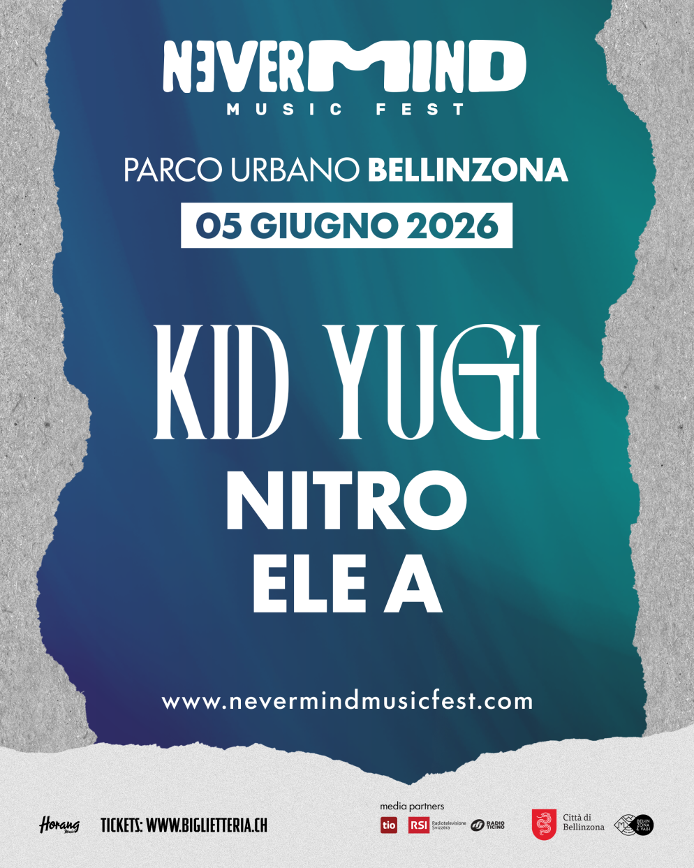 Una serata interamente dedicata al rap italiano (e ticinese). Il Nevermind Music Fest amplia il proprio cartellone annunciando per il 5 giugno 2026 al Parco Urbano di Bellinzona un evento che riunirà tre protagonisti della scena: Kid Yugi, Nitro ed Ele A, artista luganese recentemente protagonista anche nella settimana di Sanremo, dove si è esibita in un emozionante showcase negli spazi di Rolling Stone.