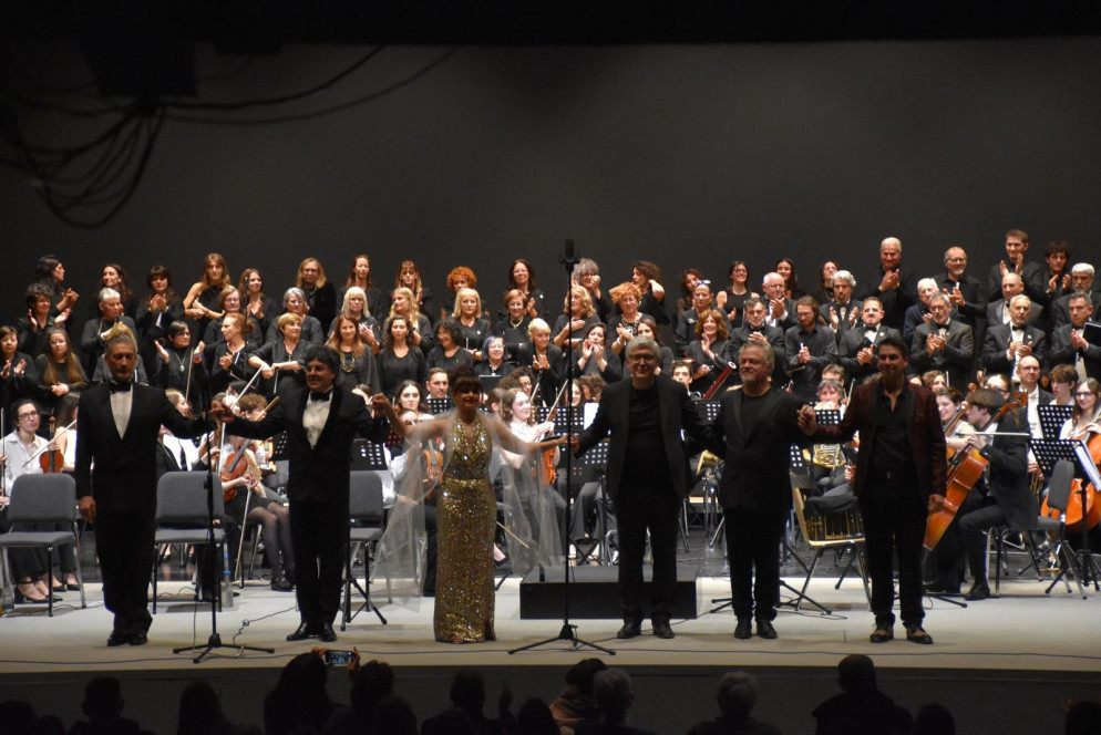 Composto da un’ottantina di elementi guidati da maestro Eduardo Vallejo e affiancato dalle orchestre giovanili Superar Lugano e UKOM e da solisti argentini di fama (il soprano Ivanna Speranza, il tenore Ricardo Mirabelli, il baritono Guillemo Bussolini e il bandeonista Nicolas Maceratesi), il Coro Lugano ha deliziato la platea con un’autentica primizia: la prima esecuzione svizzera (e una delle prime in assoluto dopo il debutto in Argentina e un paio di recital in Germania e Italia) del Requiem per coro, solista e orchestra sinfonica composto dall’argentino Martin Palmeri che, nell’occasione, si è unito al ricco complesso vocale e strumentale quale pianista. Un’opera nella quale sacro e profano si incontrano, mescolando classicismo e tradizione popolare argentina (il tango, in particolare) e che è stata seguita dall’esecuzione, da parte del coro, di brani del repertorio tradizionale nei quali il palcoscenico è stato ulteriormente arricchito dalla presenza di un coro giovanile. Grandi applausi, alla fine, per tutti, soprattutto per i coristi argentini e il loro Maestro che hanno potuto coronare il sogno di esibirsi, finalmente, in quella Lugano che consideravano poco più di un miraggio ma alla quale, da oggi, si sentono molto più vicini.