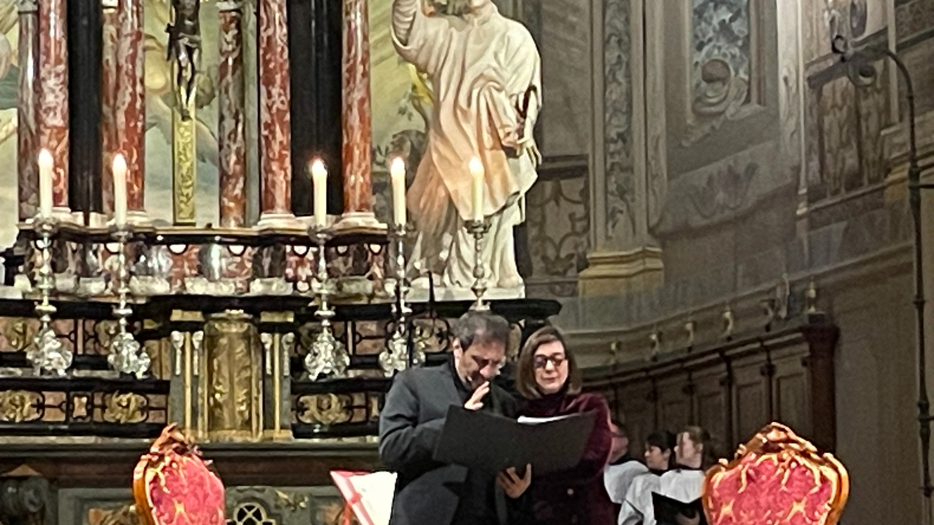 L’appuntamento conclusivo dell’edizione 2026 della rassegna, svoltosi domenica pomeriggio, queste due anime le ha unite, grazie alla presenza del Coro della Cattedrale diretto da Robert Michaels e ad racconto scenico, intitolato Caro Agostino che, curato da Claudio Laiso , ha avuto quali protagonisti due volti (e voci) conosciutissimi nella Svizzera italiana, Claudio Moneta e Elda Olivieri. Tema: Sant’Agostino di Ippona, una delle più grandi personalità della Chiesa romana di cui è stato uno dei primi e maggiori filosofi e il cui insegnamento, ancora oggi, è una pietra miliare della dottrina cristiana. Una figura straordinaria e complessa, alla quale i Vesperiali si sono avvicinati attraverso un’intervista al santo, costruita attingendo alle sue celebri Confessioni: un dialogo in cui Agostino (Claudio Moneta) è invitato a parlare di sé e del suo percorso di avvicinamento alla fede durante un sereno colloquio con il Padreterno (Elda Olivieri). Colloquio nel quale Agostino non si sofferma tanto su quella filosofia di cui fu maestro e neppure sulle dissertazioni teologiche seguite alla sua conversione (Agostino si convertì solo dopo i trent’anni), bensì sul suo percorso umano partendo dall’infanzia, proseguendo con il periodo da studente a Cartagine, la scoperta del pensiero filosofico di Cicerone, l’avvicinamento al manicheismo, il trasferimento in Italia (prima a Roma, poi a Milano) fino al decisivo incontro con S. Ambrogio. Un racconto che nella narrazione in Cattedrale, ha posto l’accento principalmente sul contrasto tra l’adolescenza e la gioventù da «peccatore» di Agostino, guardata con un disprezzo ed una vergogna addirittura esagerata, quasi da fanatico intransigente, e l’illuminazione divina che, assieme alle preghiere e alla devozione della madre Monica, ha drasticamente mutato la sua vita. Una narrazione intensa, splendidamente effettuata da Moneta e Olivieri, e inframmezzata dai canti della Corale luganese che hanno reso ancora più sacrale l’ evento.