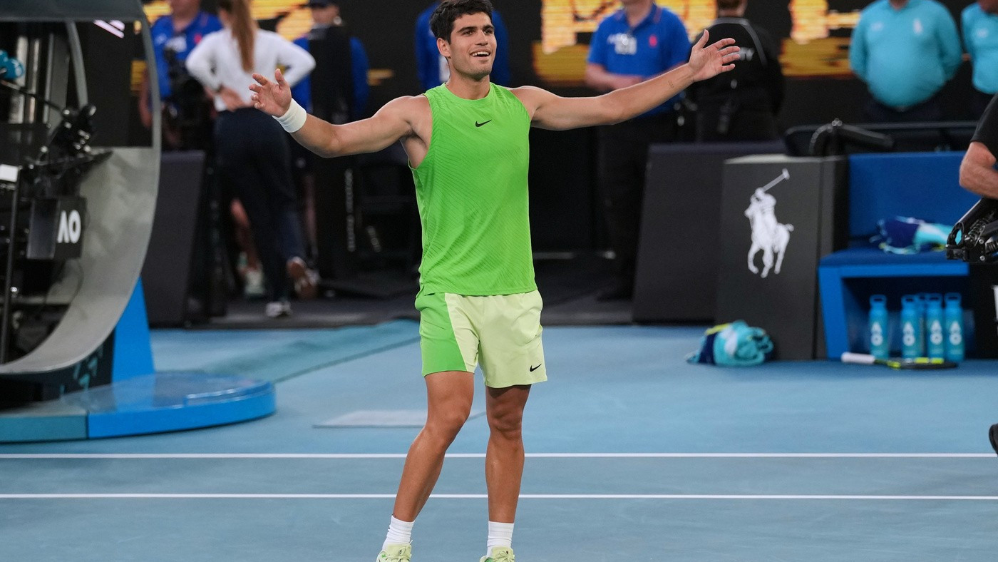 Carlos Alcaraz disputerà domenica la sua prima finale all’Australian Open, l'unico titolo del Grande Slam che manca al suo palmarès. Il numero 1 al mondo ha sconfitto in semifinale Alexander Zverev 6-3 7-6 (7/5) 6-7 (3/7) 6-7 (4/7) 7-5 in 5 ore e 27 minuti. Nell’atto conclusivo affronterà il vincitore della sfida tra l’italiano Jannik Sinner e ils erbo Novak Djokovic.