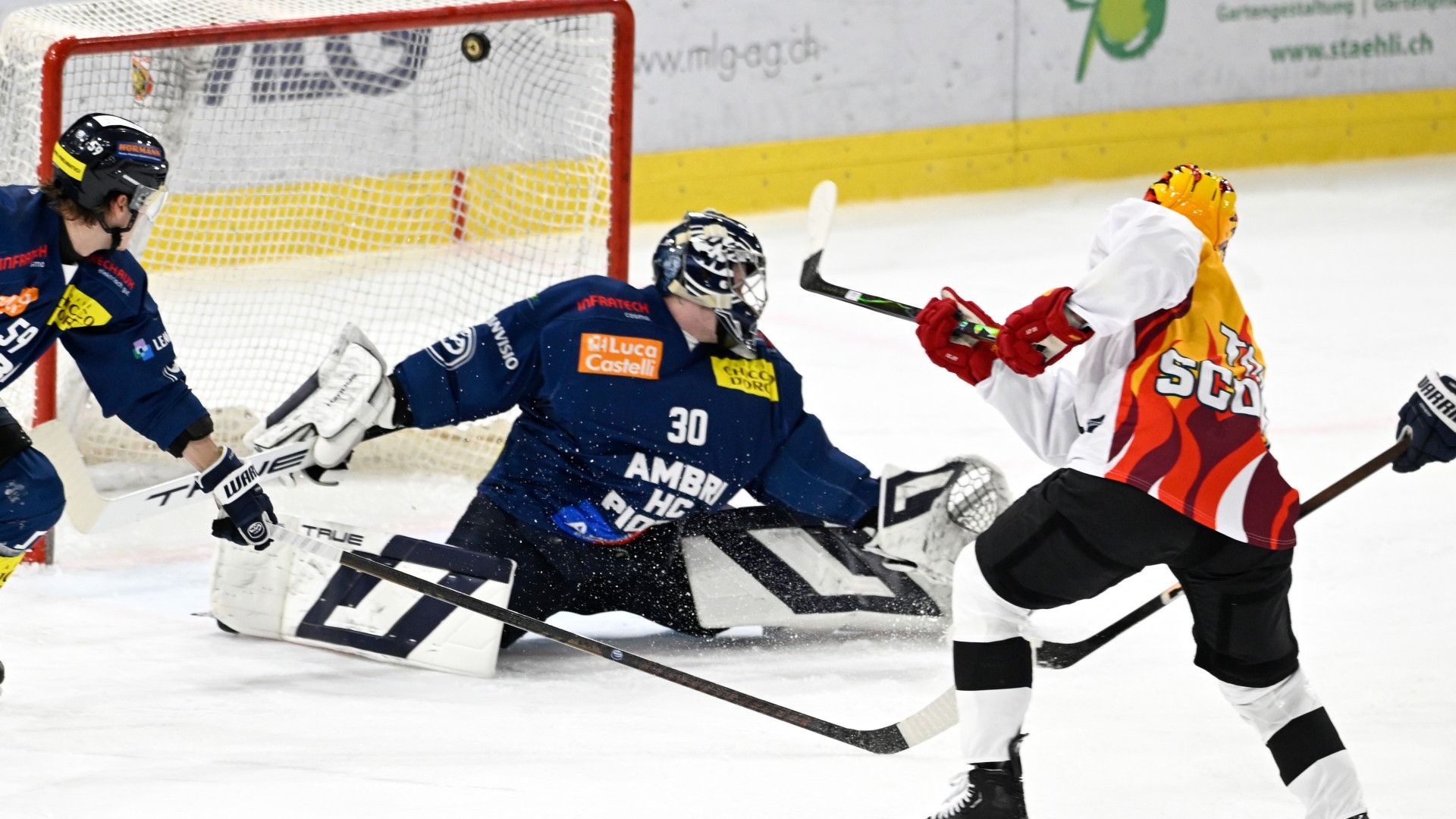 Le prime fasi del match sono state caratterizzate da un sostanziale equilibrio. Le occasioni migliori, per contro, sono capitate all'Ambrì Piotta. La prima, al 12', con Miles Müller dopo un'ottima azione imbastita da Zwerger. Meyer, nella circostanza, si è dimostrato all'altezza della situazione. La seconda, altrettanto ghiotta, al 16', con Pestoni incapace di concretizzare. A mancare, in sostanza, è stata la precisione.