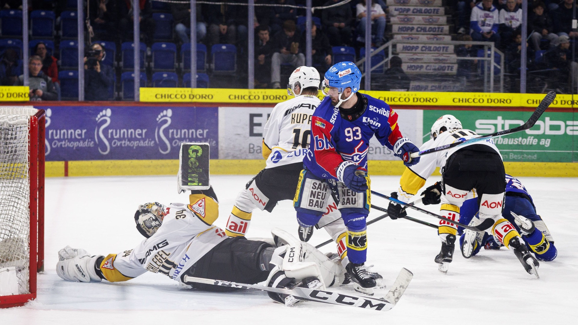 Il primo tempo non offre molte emozioni. Il Lugano lo conclude in vantaggio grazie alla prima rete stagione del finlandese Kupari, bravo a deviare un tiro di Brian Zanetti. Le occasioni sono merce rara, il Kloten è pericoloso con Simic, che fallisce a tu per tu con Schlegel, e poi nel finale colpisce un’asta. Il ritmo della sfida non è molto alto.