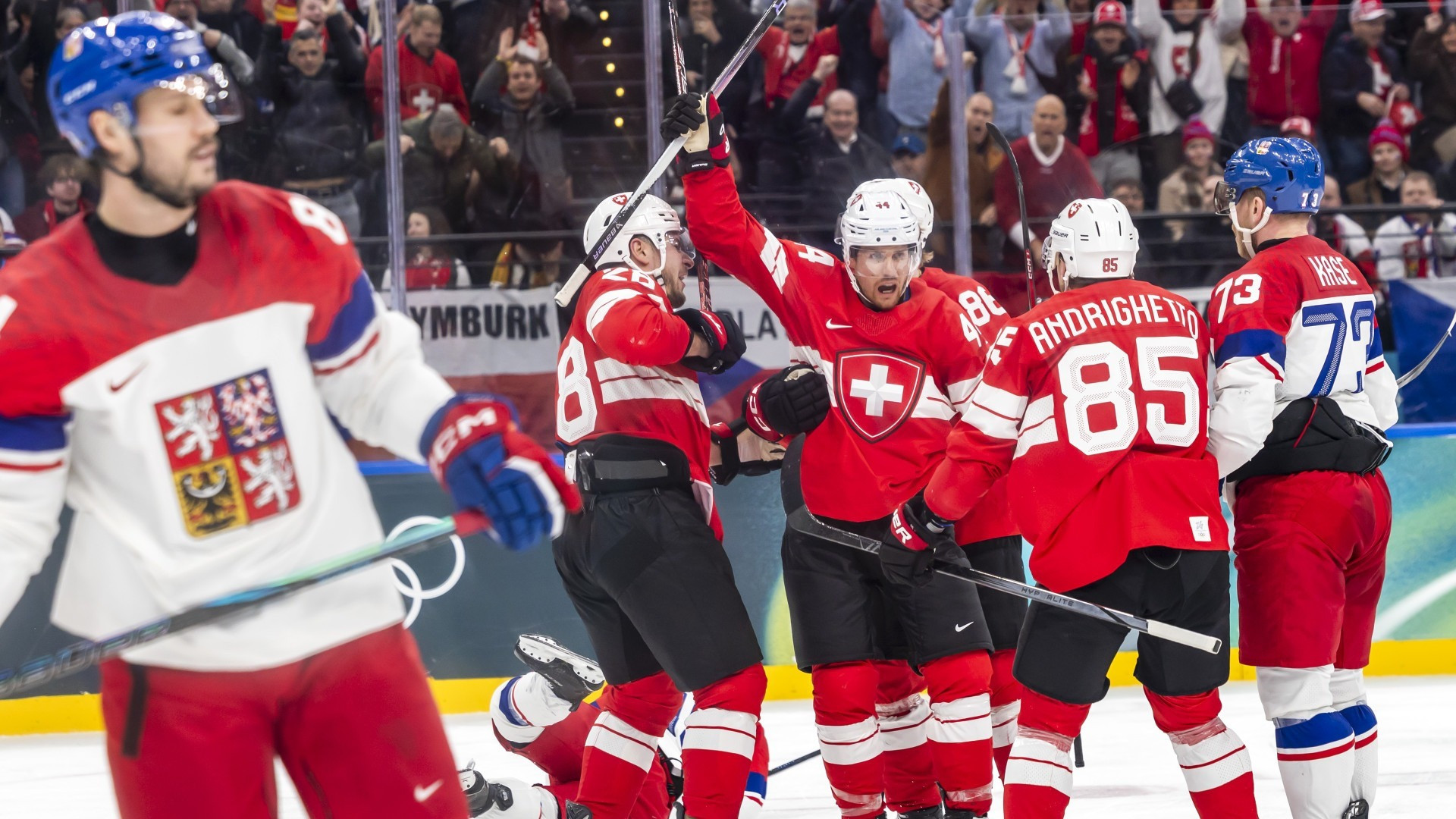 La Cechia parte all'attacco, ma la Svizzera reagisce. Al 44'16'' Knak è protagonista di un'azione di alleggerimento che sfocia in un tiro insidioso. Poco dopo gli arbitri non vedono una bastonata sul volto di Niederreiter e Fischer si infuria. Al 45'39'' ci prova Meier, innescato da Hischier. Al 46'33'' la Cechia pareggia con Simek, dopo un paio di rimbalzi concessi da Genoni. Tutto da rifare, sì, ma lo rifacciamo in fretta: al 48'07'' Pius Suter firma infatti il 3-2, sfruttando il gran lavoro di Timo Meier e un primo tiro di Moser. Il nuovo vantaggio dà inizio a una lunga gara di resistenza e sofferenza. Il disco è sempre sul bastone dei nostri avversari, che al 55'26'' conquistano una superiorità numerica. Ad atterrare Sedlak è Michael Fora. Al 56'34'' la Cechia senza, ma la rete viene annullata per ostruzione ai danni di Genoni. Coach Rulik decide di togliere anticipatamente il portiere per giostrare in 6 contro 4. E al 56'57'' chiama il time-out. Fora rientra, ma la pressione ceca prosegue. E il pareggio arriva con Necas al 57'54'', con i rossocrociati a regalare un ingresso troppo facile nel terzo. Si va all'overtime. E a deciderlo è Kukan al 61'49''. Vittoria importantissima.