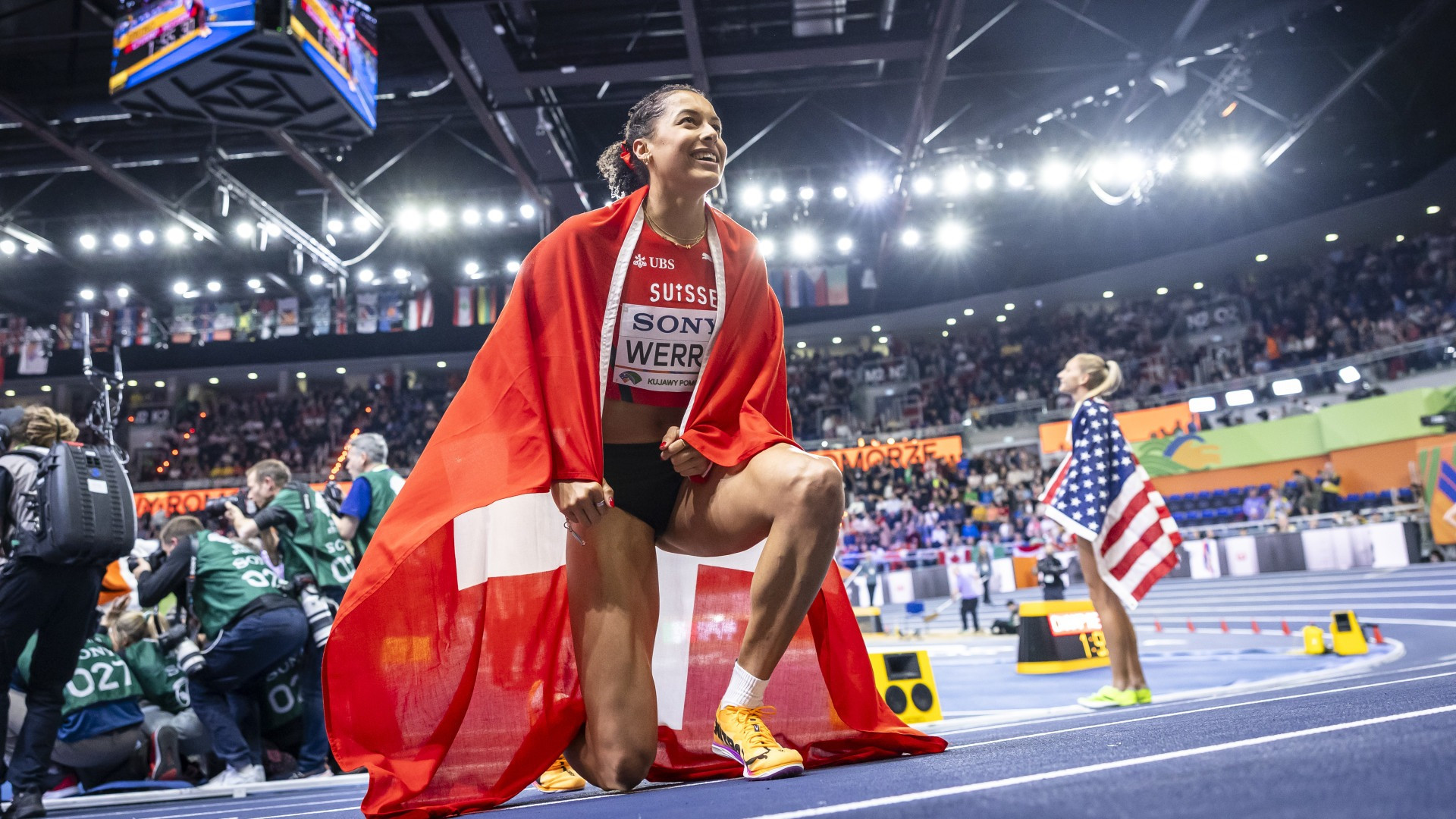Altre due medaglie per l'atletica svizzera ai Mondiali indoor di Torun. Dopo l'oro conquistato ieri da Simon Ehammer nell'eptathlon, con tanto di record mondiale, questa sera sono state due ragazze rossocrociate a salire sul podio. Dapprima è arrivato il bronzo di Angelica Moser nel salto con l'asta, con un balzo di 4,70 m al primo tentativo. La vittoria è andata alla britannica Molly Caudery. Poco dopo, negli 800 metri, è stata Audrey Werro a mettersi al collo l'argento con con il tempo di 1'56''64, nuovo record svizzero, dietro alla britannica Keely Hodgkinson. Delusione invece per Ditaji Kambundji, solo quarta nei 60 m ostacoli.
